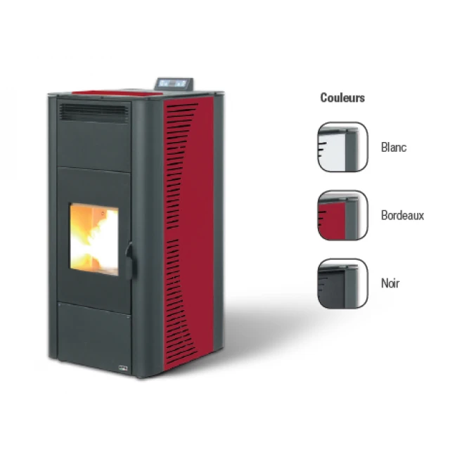 Le plus : multifonctions par définition, le poêle hydro Rondinara 19 kW offre aussi l’avantage d’une parfaite intégration dans tous les styles de décorations intérieures. Son design moderne et épuré, ainsi que sa déclinaison de couleurs sur les faces latérales en acier permettent de le transformer en un élément de décoration à part entière.