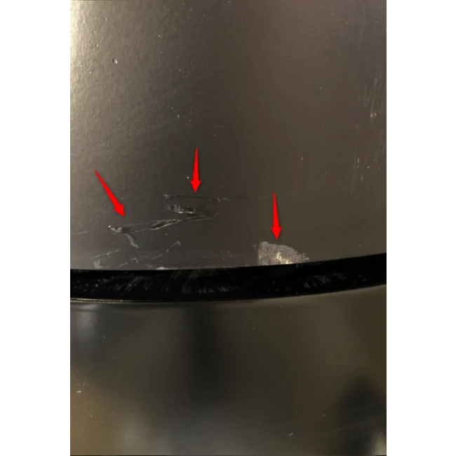 Plusieurs rayures se trouvent sur la porte et la poignée du poêle.