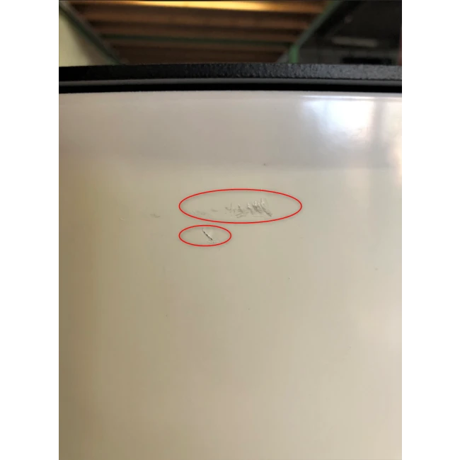 Des rayures sont sur le haut et le bas du côté droit ainsi qu’une tâche